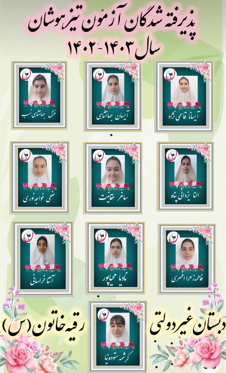 کسب مقام اول مسابقات تنیس روی میز استانی و راهیابی به مسابقات کشوری توسط دانش آموز عزیز سوگل سعیدی را به خانواده محترمشان تبریک میگوییم .